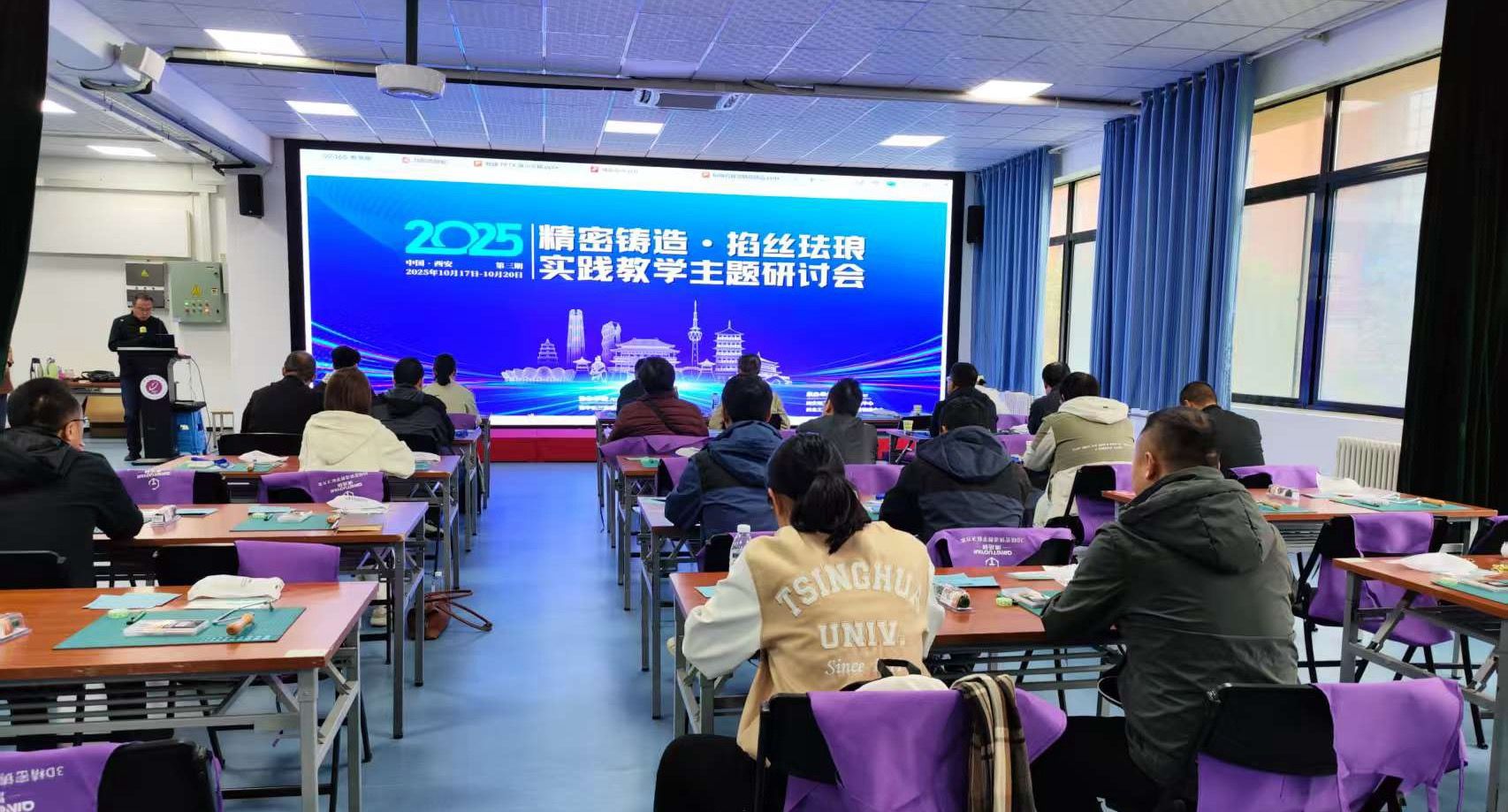 2025年10月18日至19日,由教育部工程创客虚拟教研室主办,清华长三角研究院技术与工程教育研究中心协办,西安理工大学工程训练中心和西北工业大学工程实践训练中心承办的“2025精密铸造·掐丝珐琅实践教学”主题研讨会在工程训练中心顺利召开。中心45岁以下实践指导教师与来自全国多所高校铸造教研室的骨干教师参加了培训学习和交流。