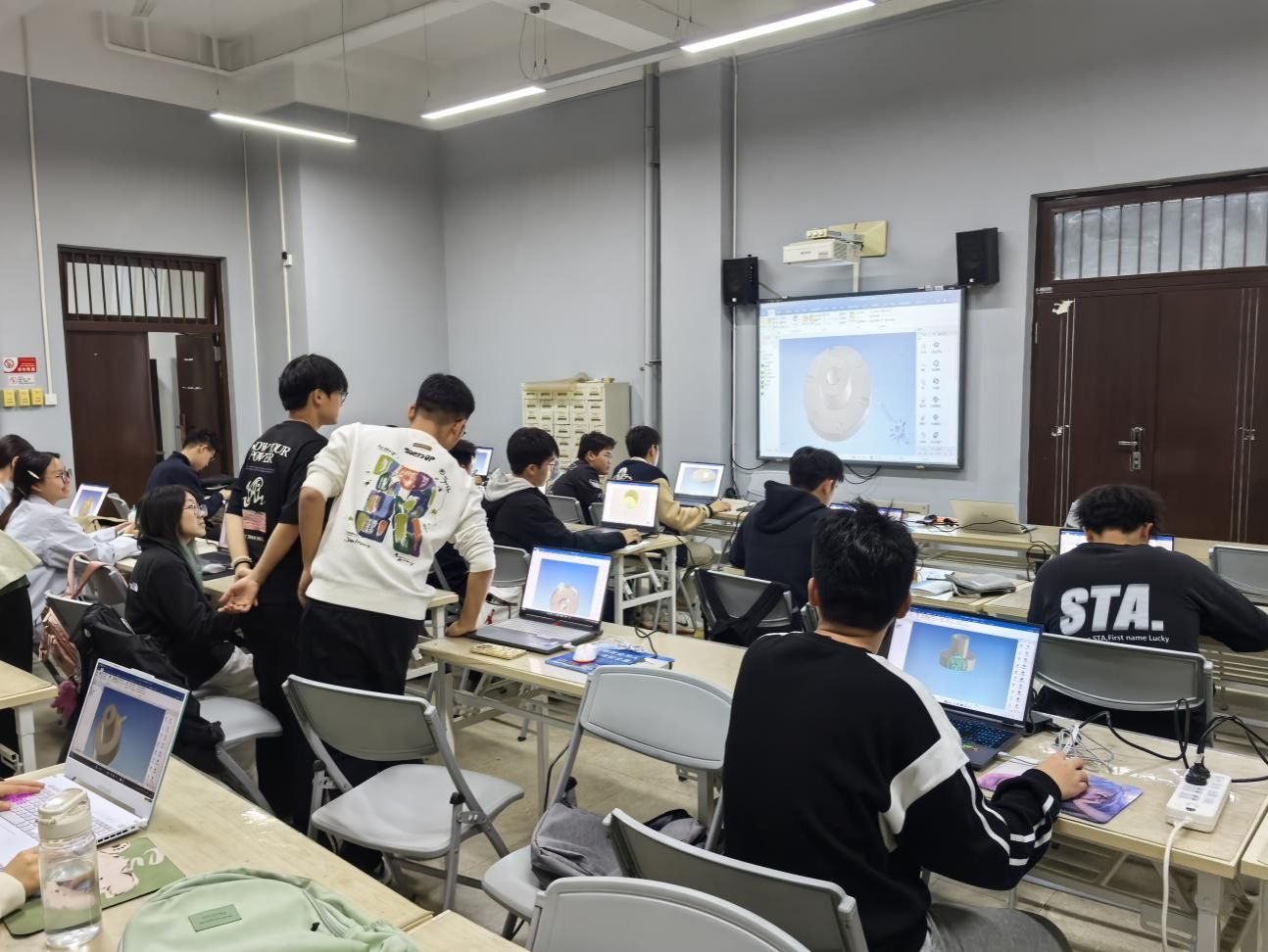 培训由社团指导教师徐德凯主讲。徐老师从CAXA实体设计软件界面认识入手,聚焦基础操作与核心工具“三维球”应用,通过理论讲解与实例操作,由浅入深地引导学员掌握基本建模流程。学员们学习热情高涨,在跟随案例实践过程中,逐步消除了对三维设计软件的陌生感与畏难情绪,体验到了三维设计的魅力与成就感。