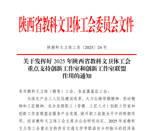 近日,陕西省教科文卫体工会公布了重点支持创新工作室项目名单,我校工程训练中心“张永乐国家级技能大师工作室”成功获批“张永乐工程训练创新工作室”,成为省级工会重点支持的教学科研创新平台。