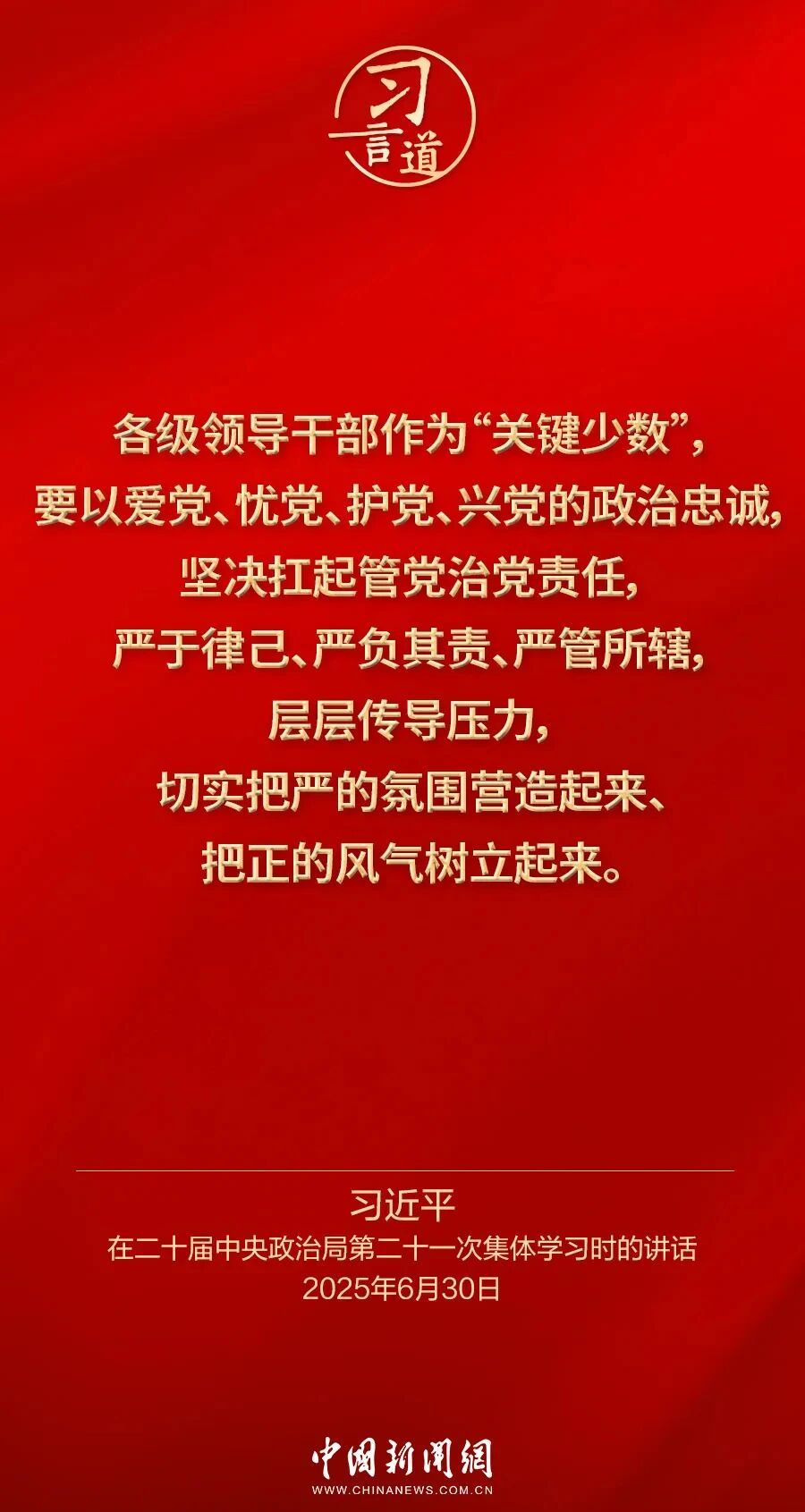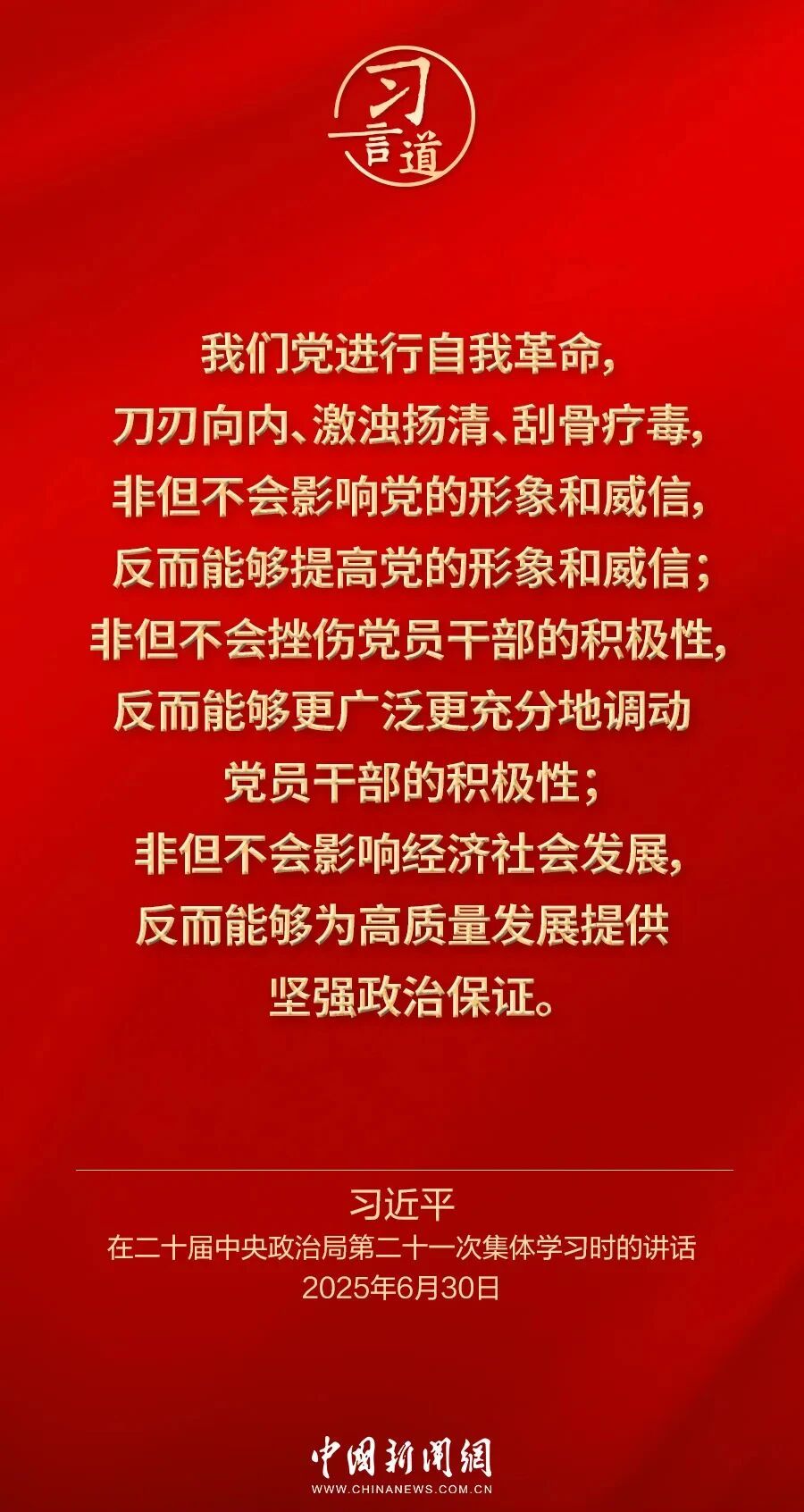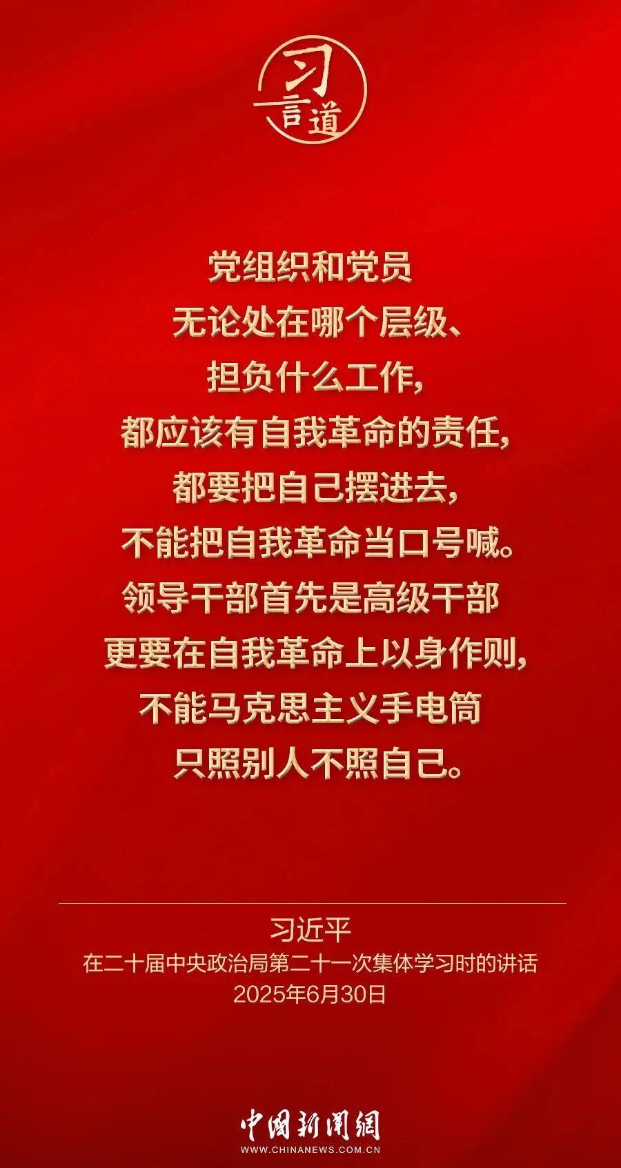 12月1日出版的《求是》杂志发表中共中央总书记、国家主席、中央军委主席习近平的重要文章《推进党的自我革命要做到“五个进一步到位”》。这是习近平总书记2025年6月30日在二十届中央政治局第二十一次集体学习时讲话的主要部分。我们梳理了总书记的部分论述,邀您一起学习领悟。